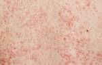 - 1-2 день – появление розовых бледных пятен без четких очертаний, которые быстро приобретают яркий цвет. На месте пятен появляются узелки (папулы), кожа вокруг них остается без изменений. На этом этапе легко можно спутать высыпания с проявлениями краснухи, кори или скарлатины. Сопровождается кожным зудом.